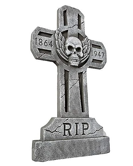 The spooky cross tombstone bears a menacing skull; the distressed finish makes it look ancient which adds to the dramatic effect. One shudders to think what lies beneath this tombstone–place it in your yard and let your imagination wander!