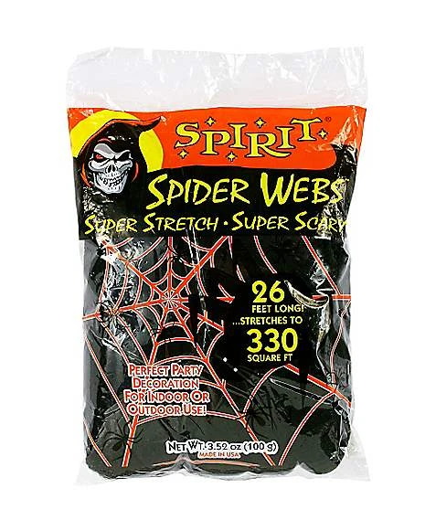 Weave a web of frightful fun when you decorate for Halloween with this spooky black super-stretchy spider web. Use it indoors or out!