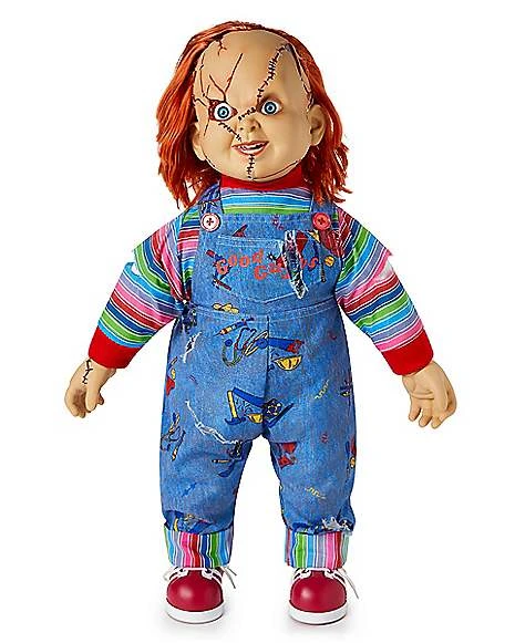 Chucky from Child’s Play is looking just as cuddly as ever. Wearing his trademark overalls with Good Guys emblazoned across the chest and paired with his cutesy striped shirt, this creepy kid has a killer smile. This Chucky doll is perfect for horror movie fans. Complete the set with the rest of his family including his Bride, Tiffany. Doll is 24″ tall.