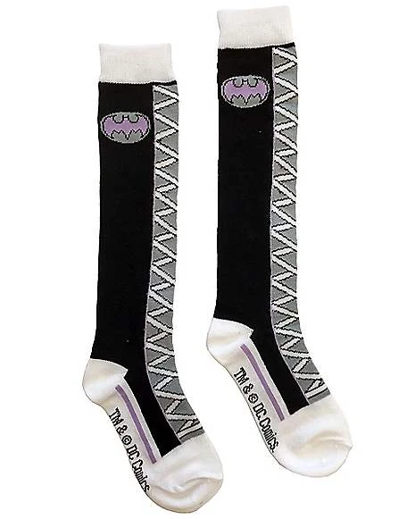 Once you try on these officially licensed Batgirl socks you won’t want to take them off! These black and white socks look like a pair of laced boots and feature a purple bat symbol at the top. Fight the cold and for justice by adding these cozy crime fighting socks to your collection.