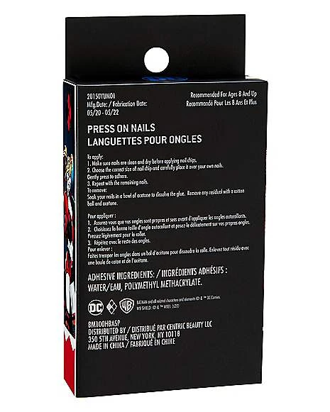 Complete your Harley Quinn style with these officially licensed DC Comics Kids Harley Quinn Press on Nails! Choose the nail sizes and patterns that fit you best for an easy and authentic Harley Quinn manicure.
