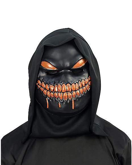 Become a stalker of the night looking to scare the life out of anyone who crosses your path this Halloween when you dress up in this Light-Up Hooded Nightstalker Mask. This mask features an all black face with orange eyes and a creepy orange smile that actually lights up and glows. This mask is perfect to go along with any all black outfit and is great for scaring your friends and family when they least expect it!