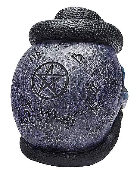 What scares you more, skulls or snakes? This terrifying tabletop decoration features a scowling skull with a black snake crawling through its eye and nose. Display this chilling decoration to get the spooky vibes flowing!