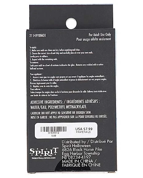 Complete your pirate look with these beautiful press-on nails. The black, red, and gold designs are sure to have you standing out.